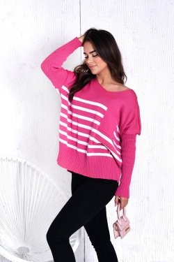 SWETER DAMSKI Z ROZCIĘCIAMI PO BOKACH W PASKI GAJA RÓŻOWY