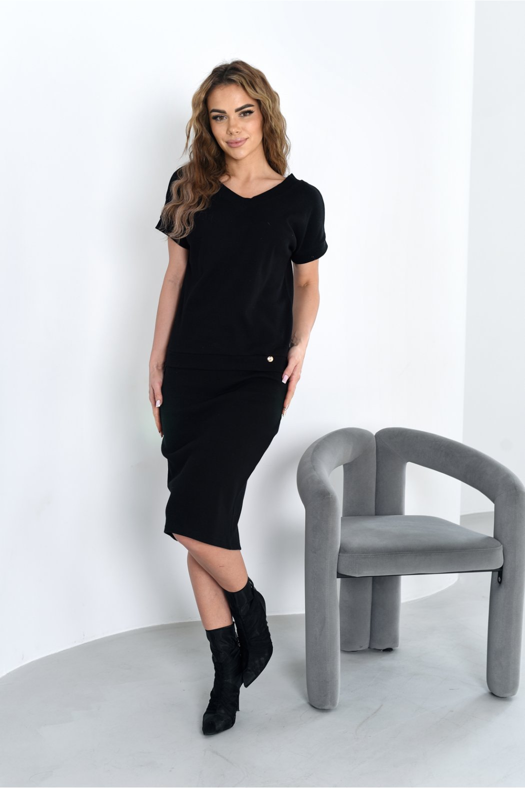 BLUZKA DAMSKA Z KRÓTKIM RĘKAWEM W PRĄŻEK Z DEKOLTEM W SEREK - AMY