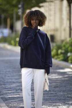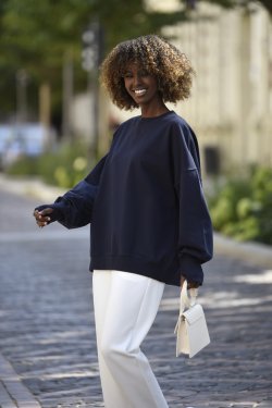 • Krój oversize z obniżoną linią ramion